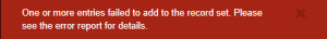 If any errors occur, including duplicate entries, a message appears. You can open the error report for more details.