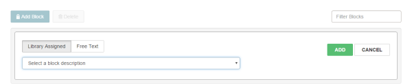 - Add a library-assigned or free text block as follows: