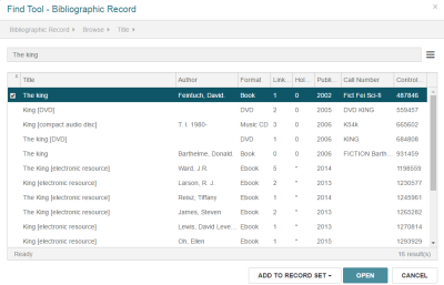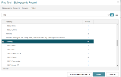 When searching for bibliographic records in the Leap Find Tool, you can choose Browse as the search type. For more information on Browse searching, see the Polaris staff client online Help.