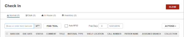 If your library is set up to print check-in receipts, you can print receipts either in Normal or Bulk mode.