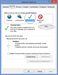 - Select OK to close the Security Settings - Trusted Sites Zone dialog box.