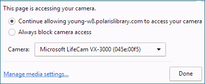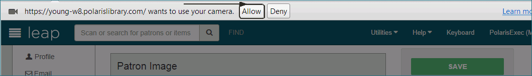 When using Chrome, you must choose the Allow button in the address bar to permit Leap to use the camera.
