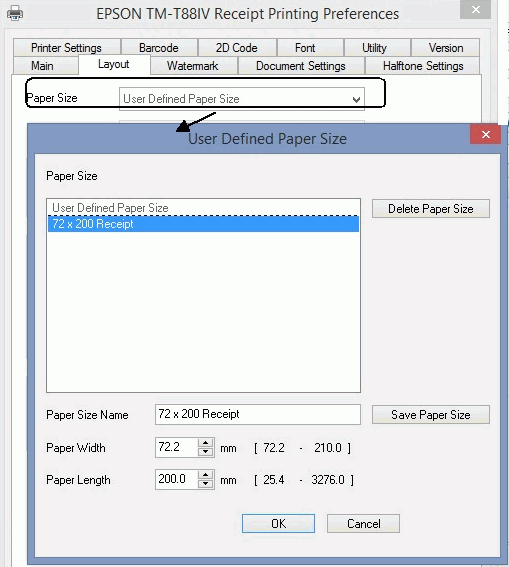 - In the Paper Size box, choose User Defined Paper Size.