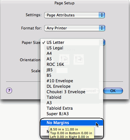 - Press the Command and P keys or choose File |Page Setup, or File | Print to open the Page Setup dialog box.