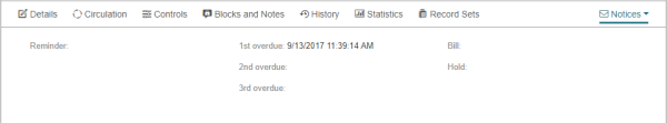 To view the notices associated with this item, select More | Notices. The Notices view displays the date and time for the notices sent regarding this item.