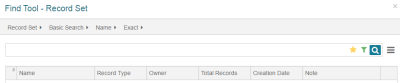 A filter is applied that limits the search by the type of record. For example, if you select Add to Existing Record Set from the Bibliographic Record workform, the search is automatically limited to bibliographic record sets.