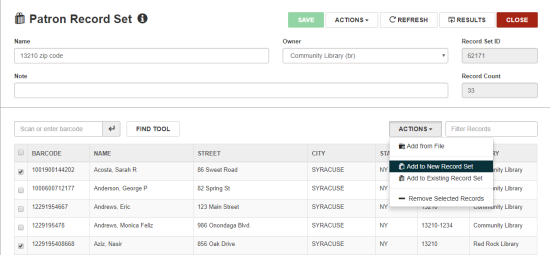 You can copy records from one record set to another new record set of the same type. The records remain in the record set from which they were copied, and they appear in the new record set.