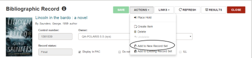 - Select ACTIONS | Add to New Record Set.
