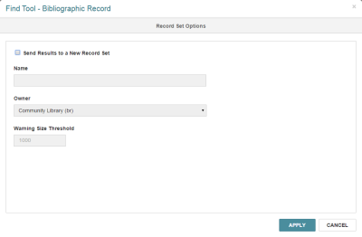 - Enter the search criteria for the cataloging records you want to add to the record set.
