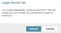 . - If the Large Record Set dialog box appears, click CREATE to continue creating the record set.