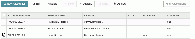 Viewing and Modifying Patron Associations