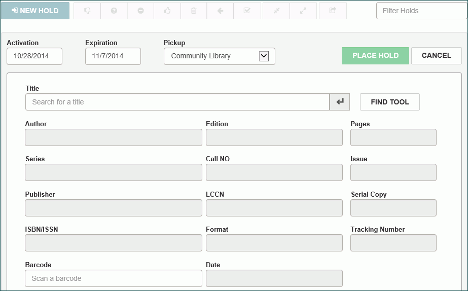 - To change the duration of the hold request, select the Activation and Expiration boxes to open the calendar control and select new date. Select PLACE HOLD.