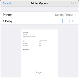 Printer Options box for an iPad
