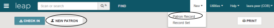 - Select New | Patron Record or click the NEW PATRON button.