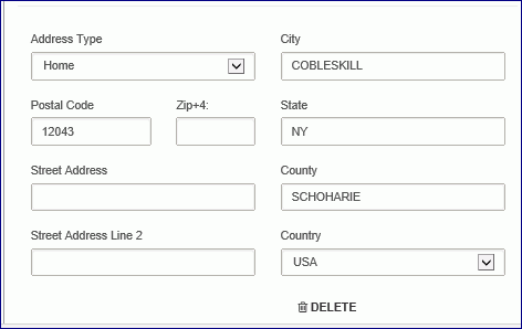 - Enter the following information in the expanded Address section: