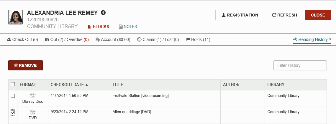 Remove an Item from a Patron's Reading History