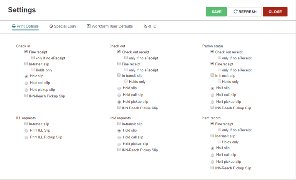 If your library has a license for INN-Reach integration with Polaris, you can select the INN-Reach print options.