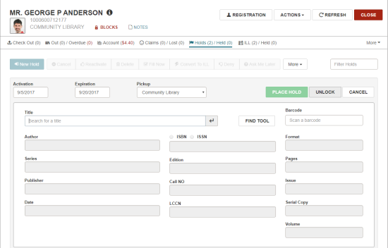 - Enter the bibliographic information and unlock the hold request using one of these methods: