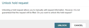 The Unlock Hold Request message box appears.