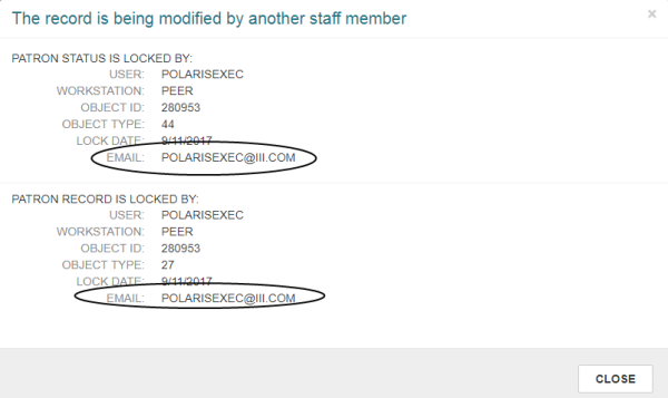 For the patron record, the locked information includes the patron status and patron registration locks.